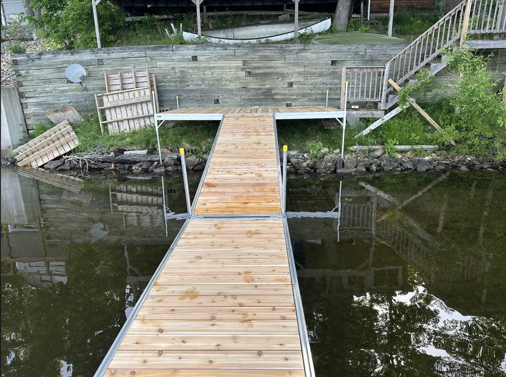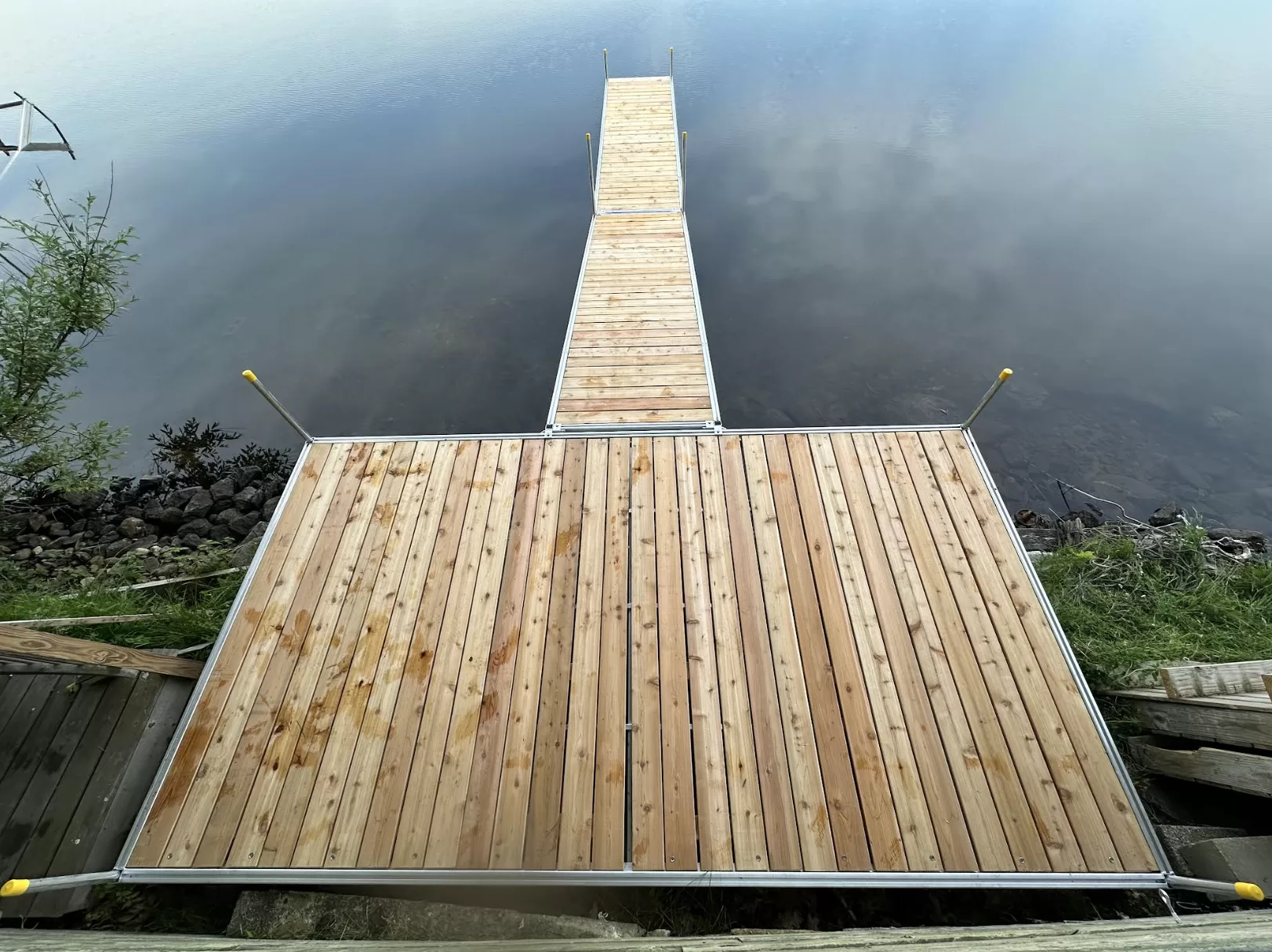 Castonguay Docks also offers western red cedar decking from Techno Docks. The western red cedar option, with the same aluminum frame bells and whistles as described on our ThruFlow page, delivers not only a gorgeous design but also the durability that your dock requires. This decking has a very low shrinkage factor and is superior to white and yellow cedar in its resistance to warping and twisting.